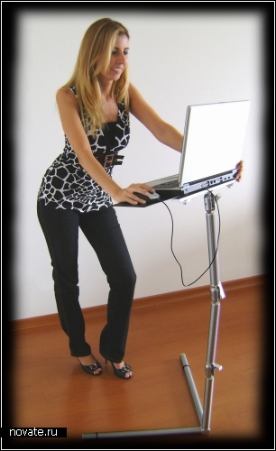Месяца три назад, когда я еще жил в своем доме, серфя по инету мне на глаза попадалась подобная штука, но не придал ей должного значения. Но щас я живу в маленькой комнате в общаге (у меня сгорел дом) катаю на ноуте, и встала проблема с обустройством рабочего места. Вообщем это типа регулирующийся кроншейн для ноута, крепящийся на полу, он регулриется так прикольно что его можно использовать стоя и сидя как столик для ноутбука и лежа на кровати\шезлонге без напряга для шеи |
